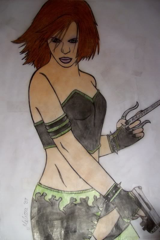 Morph Posted January 16, 2007 Report Posted January 16, 2007 (edited) Name: Kristanna Age: 19 Eyes: Green Alignment: Evil Appearance: Kristanna's Picture Allies: Mileena, Scorpion, Kano, Nitara, Tanya, Shinnok. Foes: Kitana, Sindel, Sub-Zero, Liu Kang, Kung Lao, Baraka, Hotaru, Sonya, Johnny Cage, Bo Rai Cho, Nightwolf, Jax, Shujinko, Jade, Shang Tsung, Shao Kahn, Onaga. Story: For every generation, a few a chosen to compete in a tournament, known as, Mortal Kombat. Kristanna is one of the few chosen from her realm, Outworld. Although she is from Outworld, she has the appearance of the people from Earthrealm. The reason for this? She is half Outworld, and half Earthrealm. She is the daughter of Mileena and Scorpion. After Mileena was defeated by Sonya, Shang Tsung resurrected her, and took away her appearance as a Tarkatan, since he had the power to do so all those years after he had created her. Shao Kahn then sent Mileena to Earthrealm as a spy. Shortly after Mileena's arrival in Earthrealm, she met Scorpion. The two instantly fell for one and other. Mileena returned to Outworld soon after, and reported her findings to Shao Kahn, but Shang Tsung sensed that Mileena was somehow "tainted", after that, she was once more cursed with the mouth of a Tarkatan. What Shao Kahn and Shang Tsung didn't realise though, was that Kristanna was now with her. Mileena fled Outworld, taking refuge in Earthrealm, where she went into hiding. The months flew by, and Kristanna was born. As she grew up, Mileena taught her to fight and how to use her weapons. It was also discovered that she could control fire. The same ability that Scorpion has. Mileena had never mentioned her Father to her though. When Kristanna was eight, Mileena took her back to Outworld, where they lived in Mileena's old hideout. She continued to train until she turned seventeen. By that time, she had fully mastered her fighting, weapons, and abilities. Shortly after she had completed her training, she asked Mileena who her father was, to which she replied.... "His name is Scorpion. You'll find him in Earthrealm. Maybe. I havent seen him in over seventeen years". Kristanna nodded to Mileena and proceeded to leave. She travelled to Earthrealm in search of Scorpion. It didn't take too long before she ran into trouble with Sub-Zero, who she later discovered was her Uncle. She escaped his temple and fled to the forest, where she stumbled across a cave. She carefully moved through the cave until she came across a room. The room lit up. The walls were covered in flames. On the wall, right at the end of the room, was a scorpion. She made her way over to the wall, and touched the scorion, tracing her fingers around the carving. All of a sudden, she heard someone shout "Get over here!!". She quickly dived to the side just in time to see a spear of some sort fly past her head. She quickly got to her feet and made a green flame appear in her hand, ready to launch it at her attacker. "Who are you??!" He demanded. "Kristanna. You??" She demanded in the same tone her had used with her. "I am Scorpion. You're trespassing" He replied. "You're Scorpion?" She asked in disbelief as the flame in her hand flicked out. "I am. I'm afraid I don't know you". "I'm your daughter". "I have no daughter" He responded. "Yes, you do. Just over seventeen years ago, you met my Mother. Mileena". He nodded "Yes, I remember now. But she never came to tell me of you. Not even the Elder Gods told me of you" He raised a fist to the Heavens "I do believe you though. I will teach you, and only you, all that I know". Kristanna's training began again. It continued until she was nineteen, she even learned a new trick. Her training was complete, she knew who her family was and who she could trust. Saying goodbye to her Father, she travelled back to outworld. Upon her arrival home, Mileena gave her a letter. It indictaed that she had been chosen to fight in the Mortal Kombat Tournament. Fighting Style: Ying Yeung. Weapons: Sais and Pistols. Special Moves: Spear (Scorpion). Sky Kick (Mileena). Bullet Sais (Like Mileena's 'Soaring Sais' only they're shot out of her guns). Stealthy Shadows (Scorpion) Nitro Flame (Her own creation) Frankensteiner (Mileena's 'R1' move on PS2) ----------------------------------------------------- How's that? The story sounded a bit corny to me, but, oh well. EDIT: Big story, lol. Edited February 8, 2007 by Morpheanne Quote